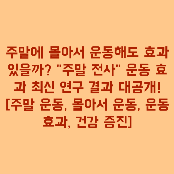 주말 운동, 몰아서 운동 효과, 주말 전사 운동, 운동 시간, 건강 증진, 사망 위험 감소, 규칙적인 운동, 운동 습관, 건강 관리, 최신 운동 연구